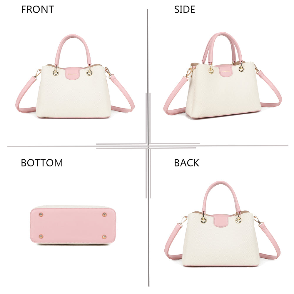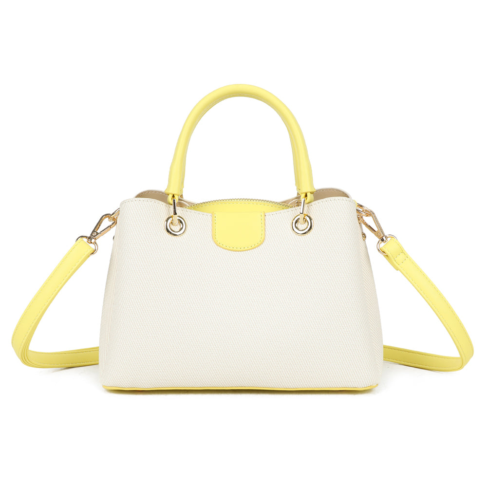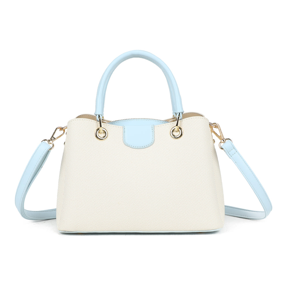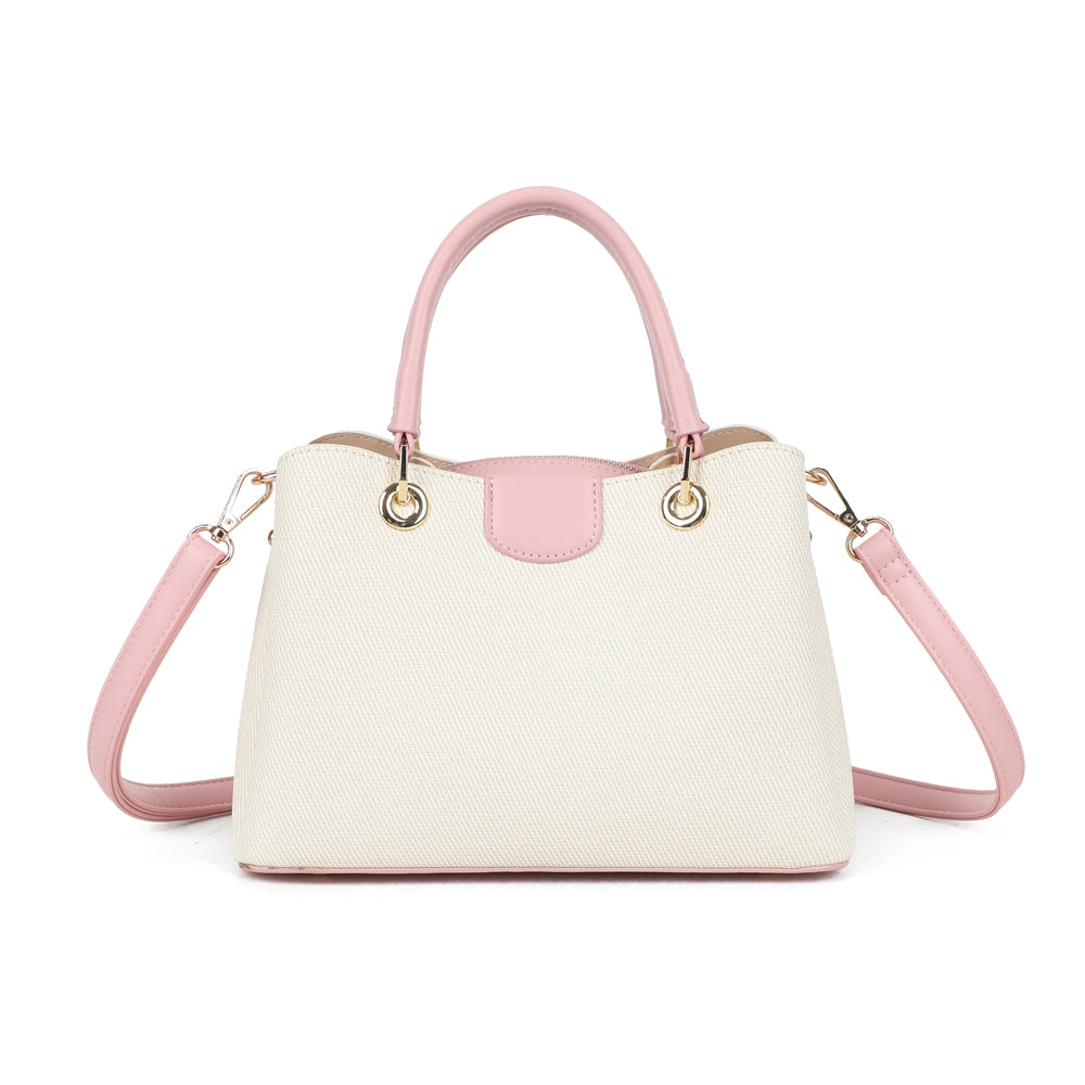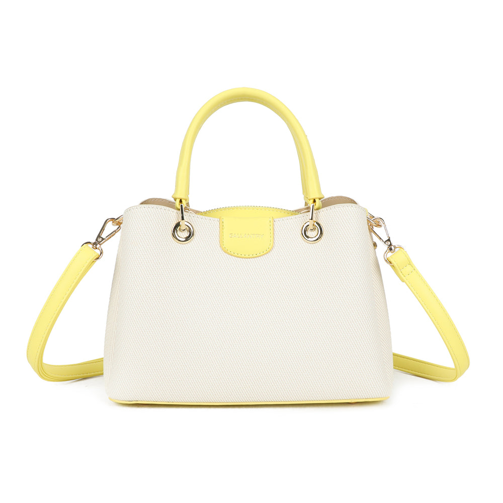Coralie vereint klassische Linien mit liebevollen Farbakzenten und wird so zum stilvollen Begleiter für jeden Tag. Die strukturierte Form sorgt für einen eleganten Auftritt, während die kontrastierenden Henkel einen modernen, frischen Touch verleihen.
