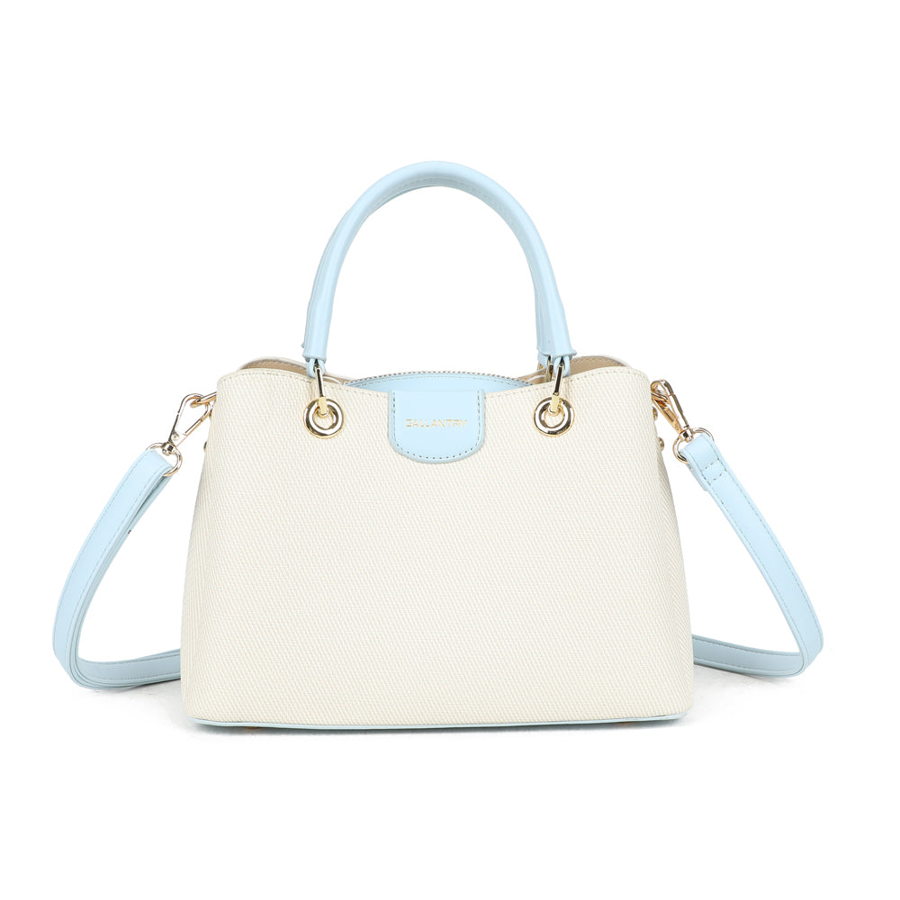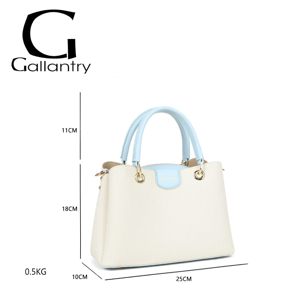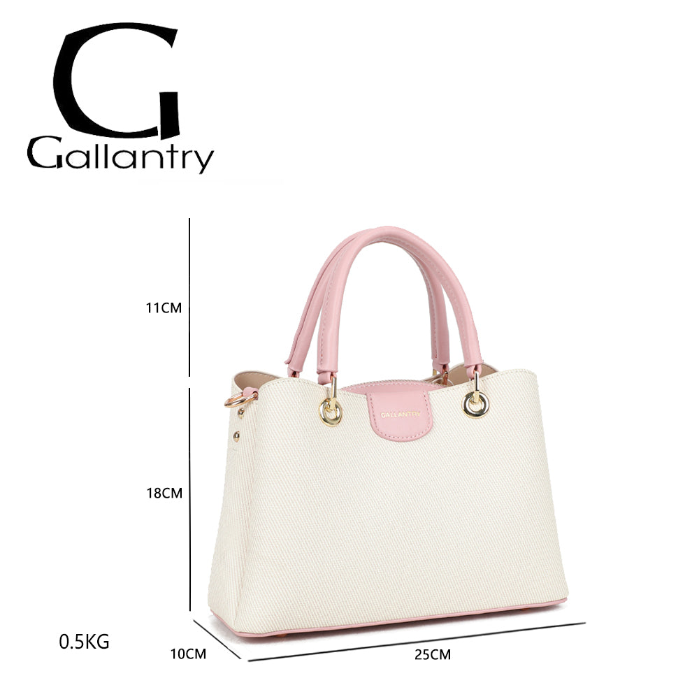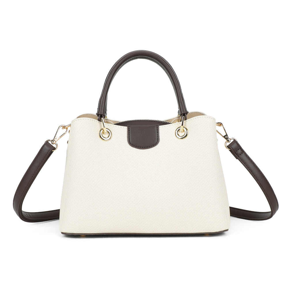 Coralie vereint klassische Linien mit liebevollen Farbakzenten und wird so zum stilvollen Begleiter für jeden Tag. Die strukturierte Form sorgt für einen eleganten Auftritt, während die kontrastierenden Henkel einen modernen, frischen Touch verleihen.