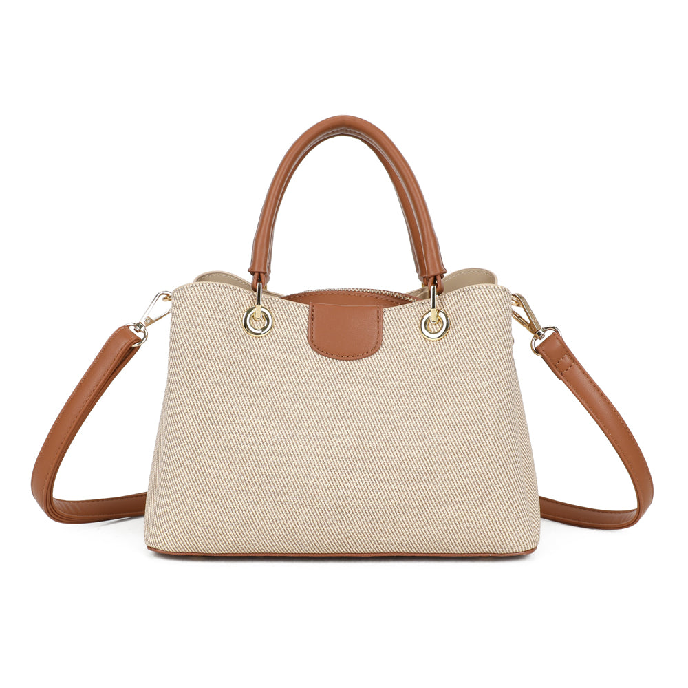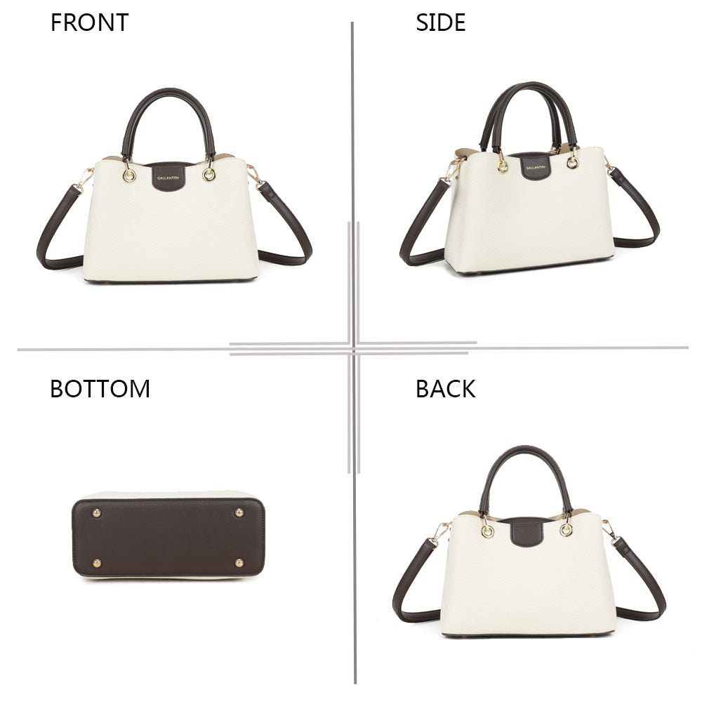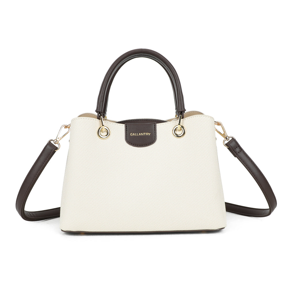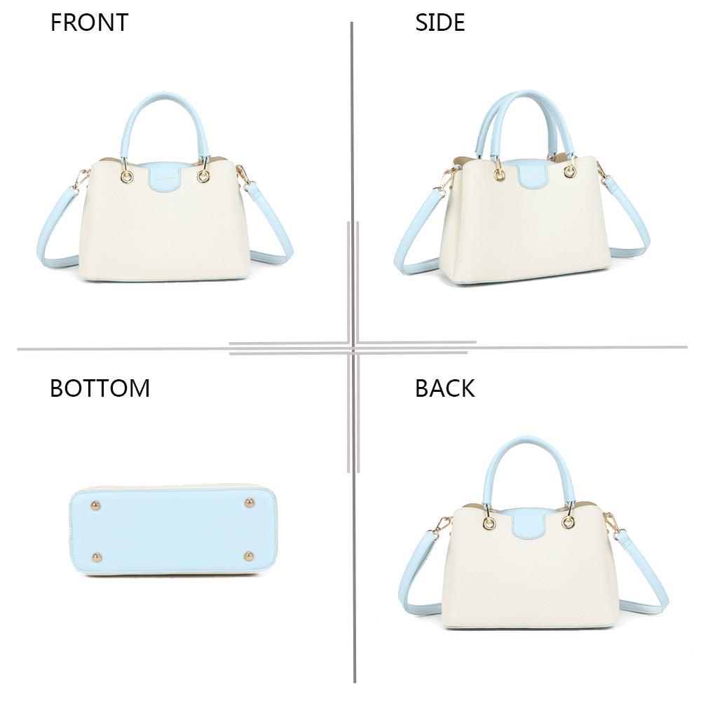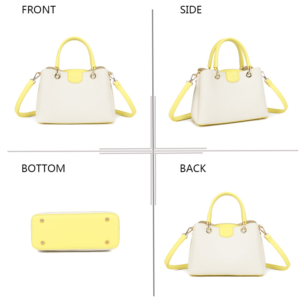Coralie vereint klassische Linien mit liebevollen Farbakzenten und wird so zum stilvollen Begleiter für jeden Tag. Die strukturierte Form sorgt für einen eleganten Auftritt, während die kontrastierenden Henkel einen modernen, frischen Touch verleihen.