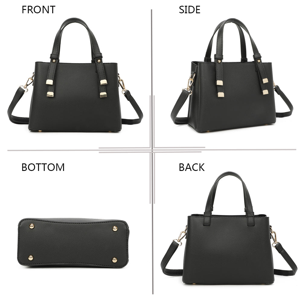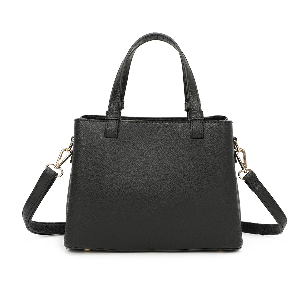 Daphne vereint elegantes Design mit praktischer Aufteilung. Sie ist mit goldfarbenen Details veredelt und ist ein stilvoller Begleiter für jeden Tag. Trotz kompakter Maße bietet sie mit drei Fächern optimale Organisation. Zwei feste Henkel und ein abnehmbarer Schulterriemen ermöglichen vielseitige Trageoptionen - klassisch oder lässig, je nach Anlass.